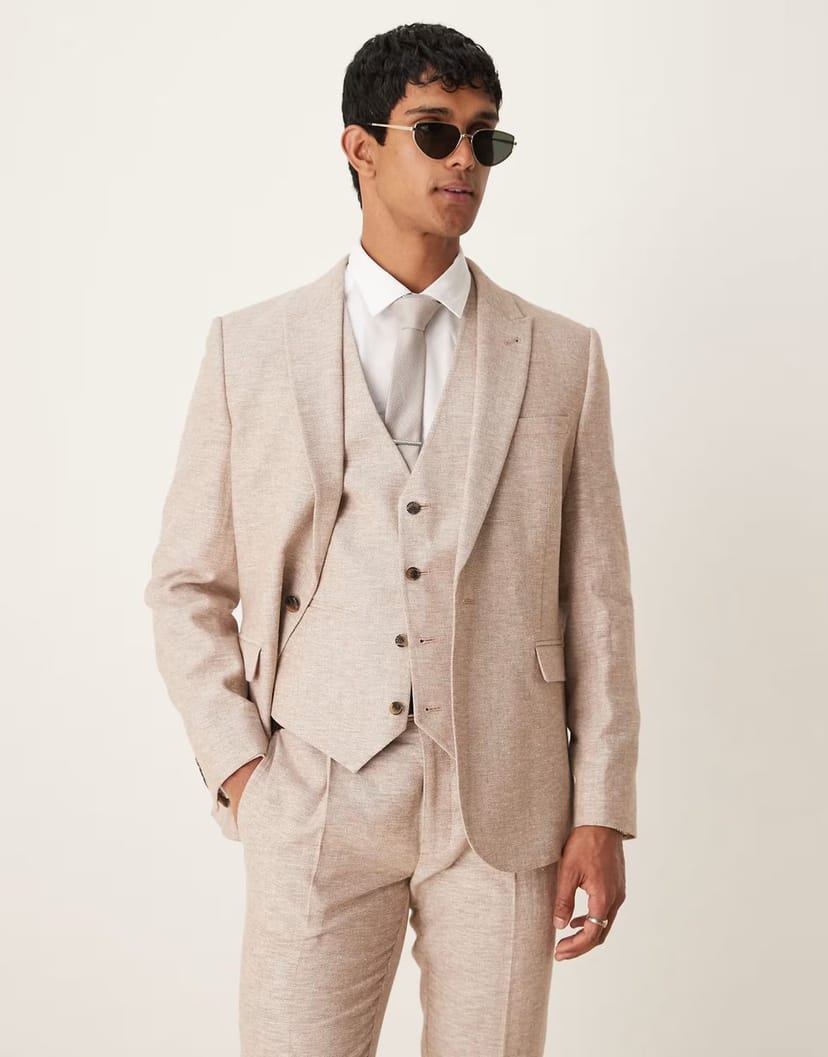 The ASOS DESIGN Slim Suit Jacket in Brown Herringbone is ideal for casual, smart-casual, business.
