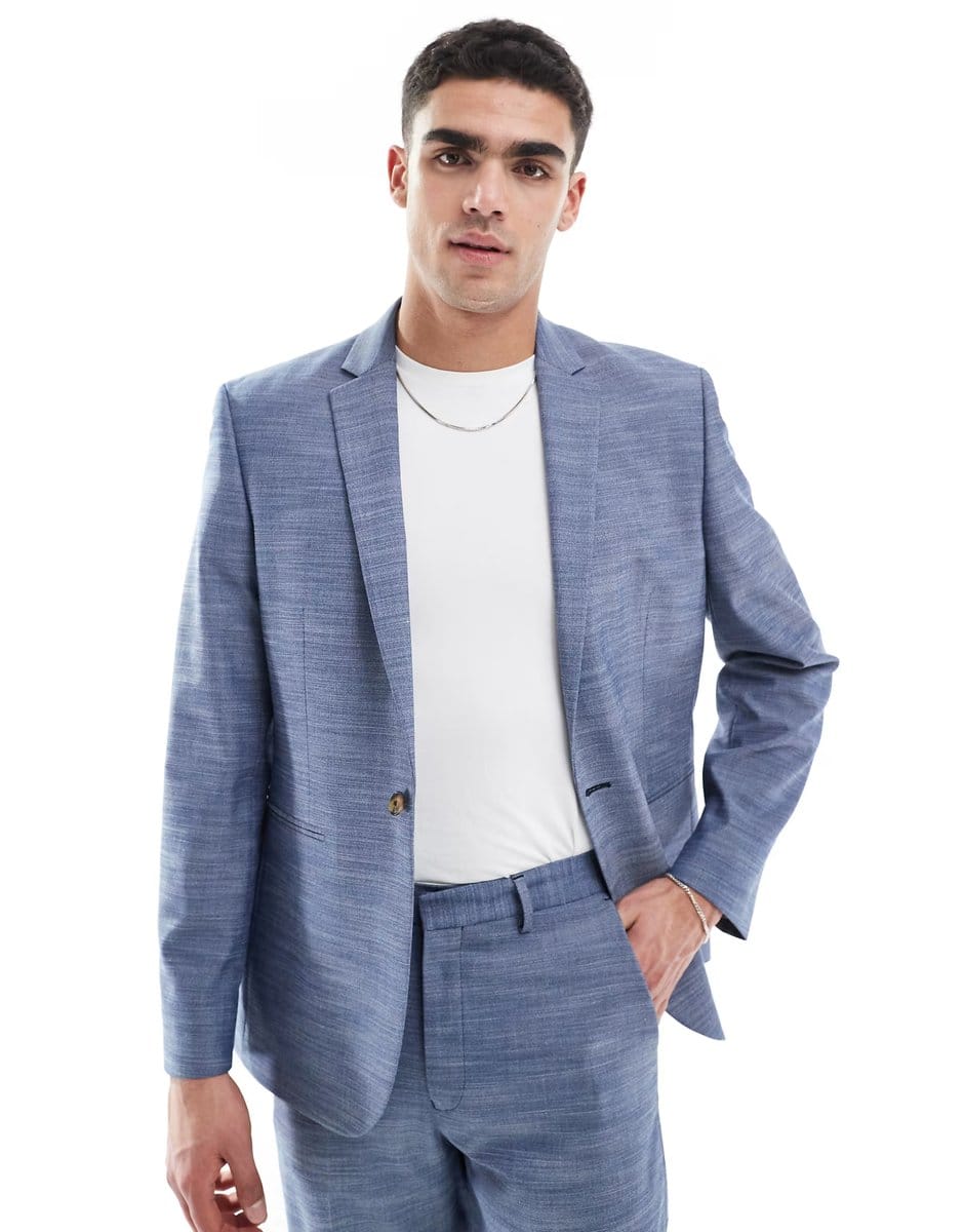 The ASOS Linen Look Slim Suit Jacket in Blue is ideal for business, smart-casual, evening.