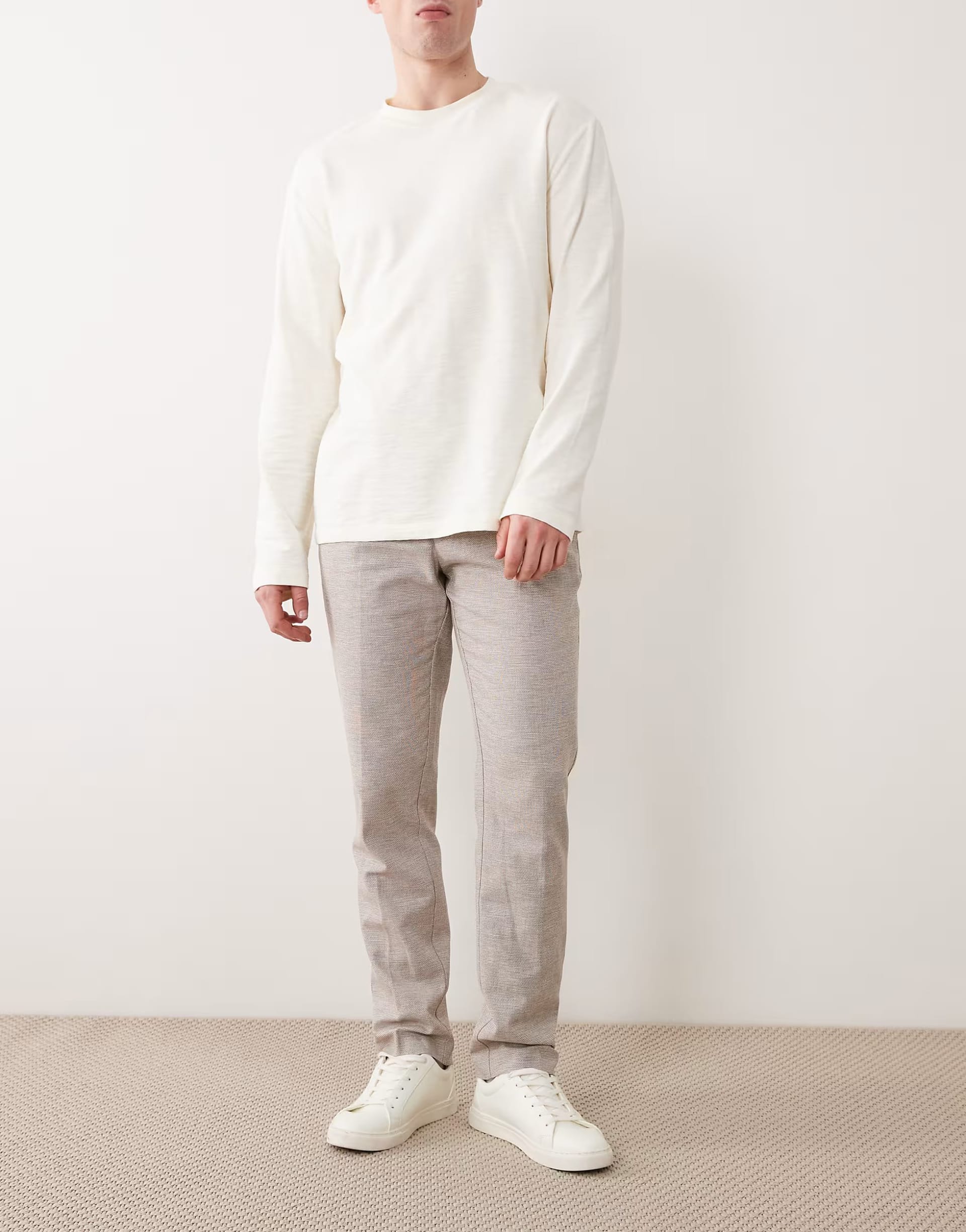 “Pair with a crisp shirt and leather loafers for a polished look.”