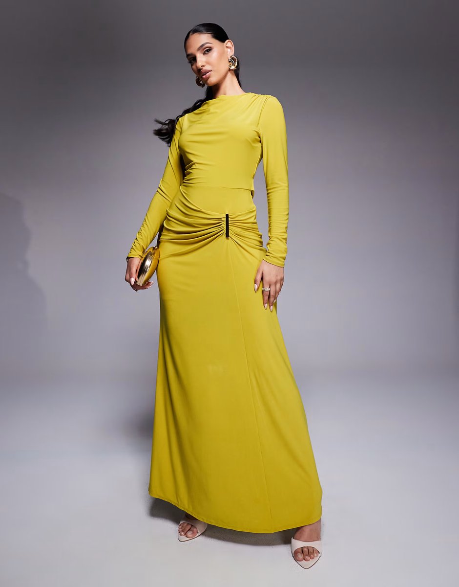 The ASOS DESIGN Lime Long Sleeve Drape Maxi Dress is ideal for wedding-guest, evening, formal.