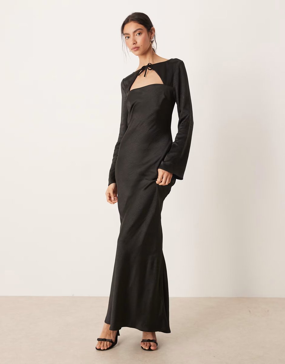 The ASOS Satin Long Sleeve Maxi Dress in Black is ideal for evening, special occasions.