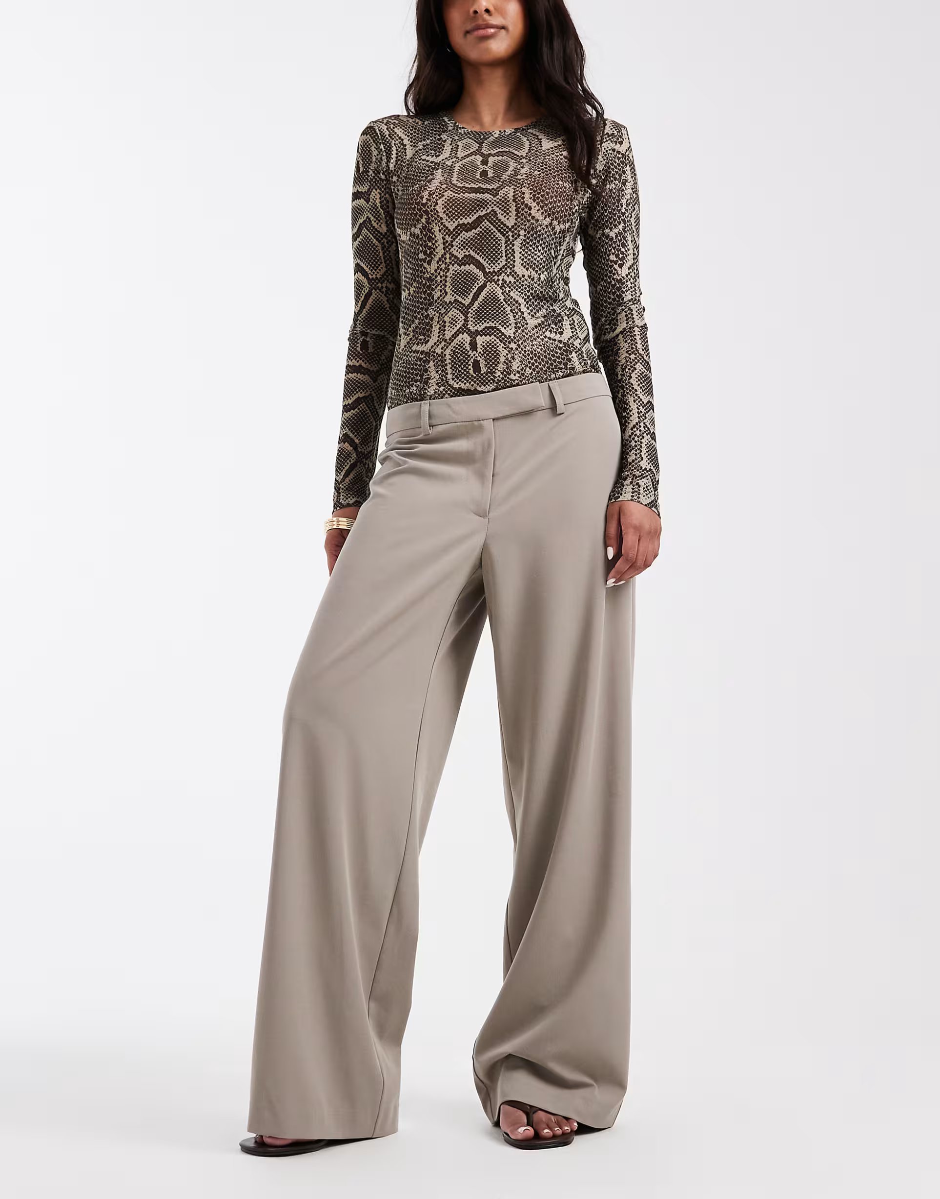 The ASOS DESIGN 90's Low Rise Tailored Trousers in Stone is made from polyester, elastane.