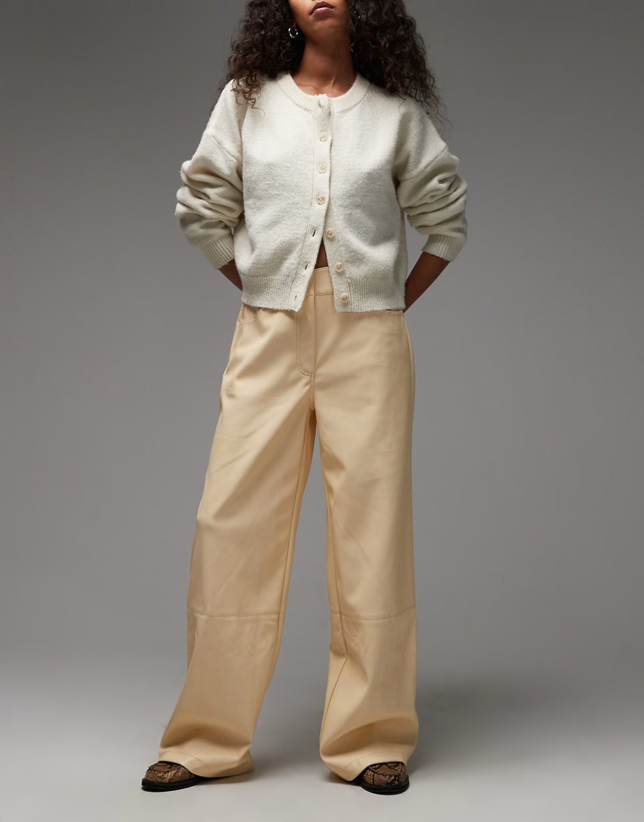 The ASOS Faux Leather Low Rise Pants in Buttermilk is ideal for casual, weekend.