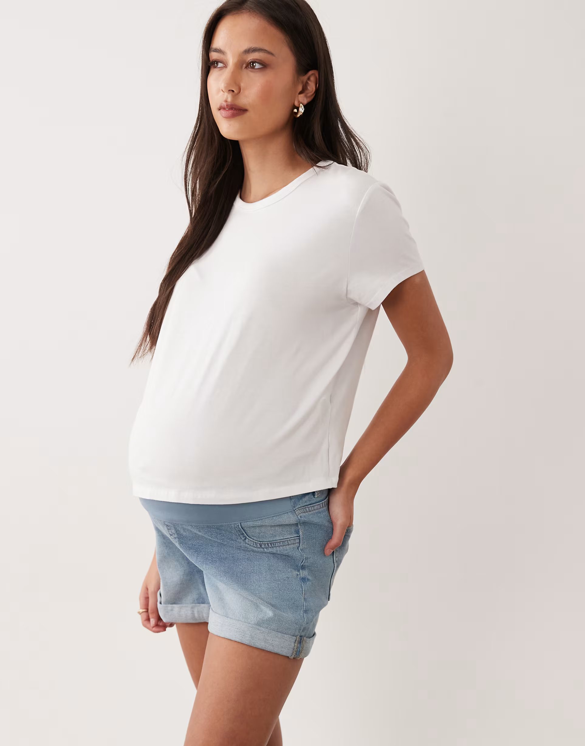 The ASOS Maternity Denim Comfort Mom Short in Mid Blue is made from denim.