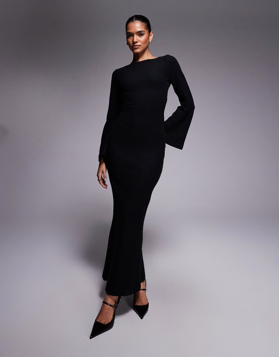 The ASOS DESIGN Black Maxi Dress with Open Back and Tie Detail is ideal for evening, formal.