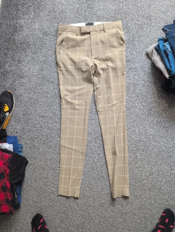 “Pair with a light blue button-down shirt and brown leather dress shoes for a polished look.”