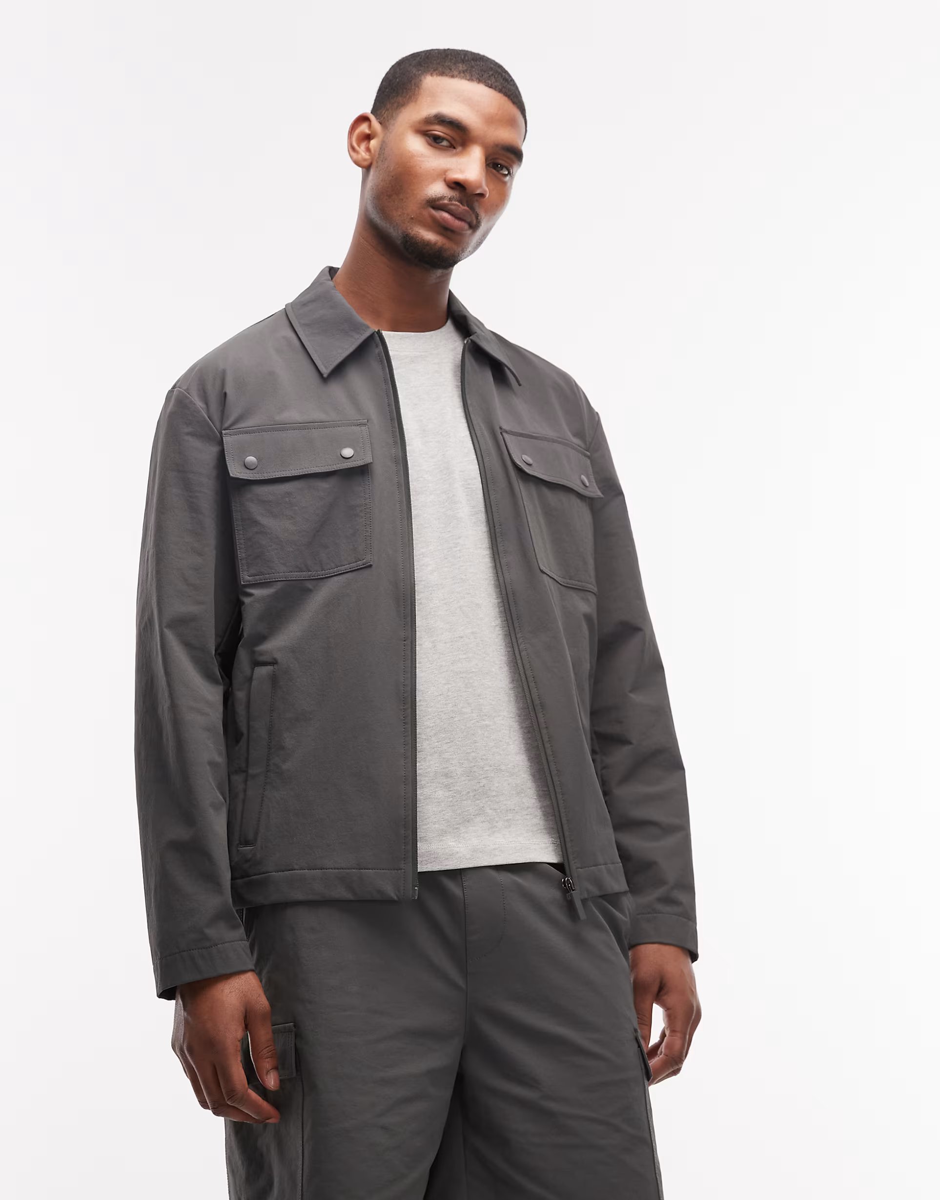 The ASOS Stretch Shacket in Charcoal is ideal for casual, weekend.
