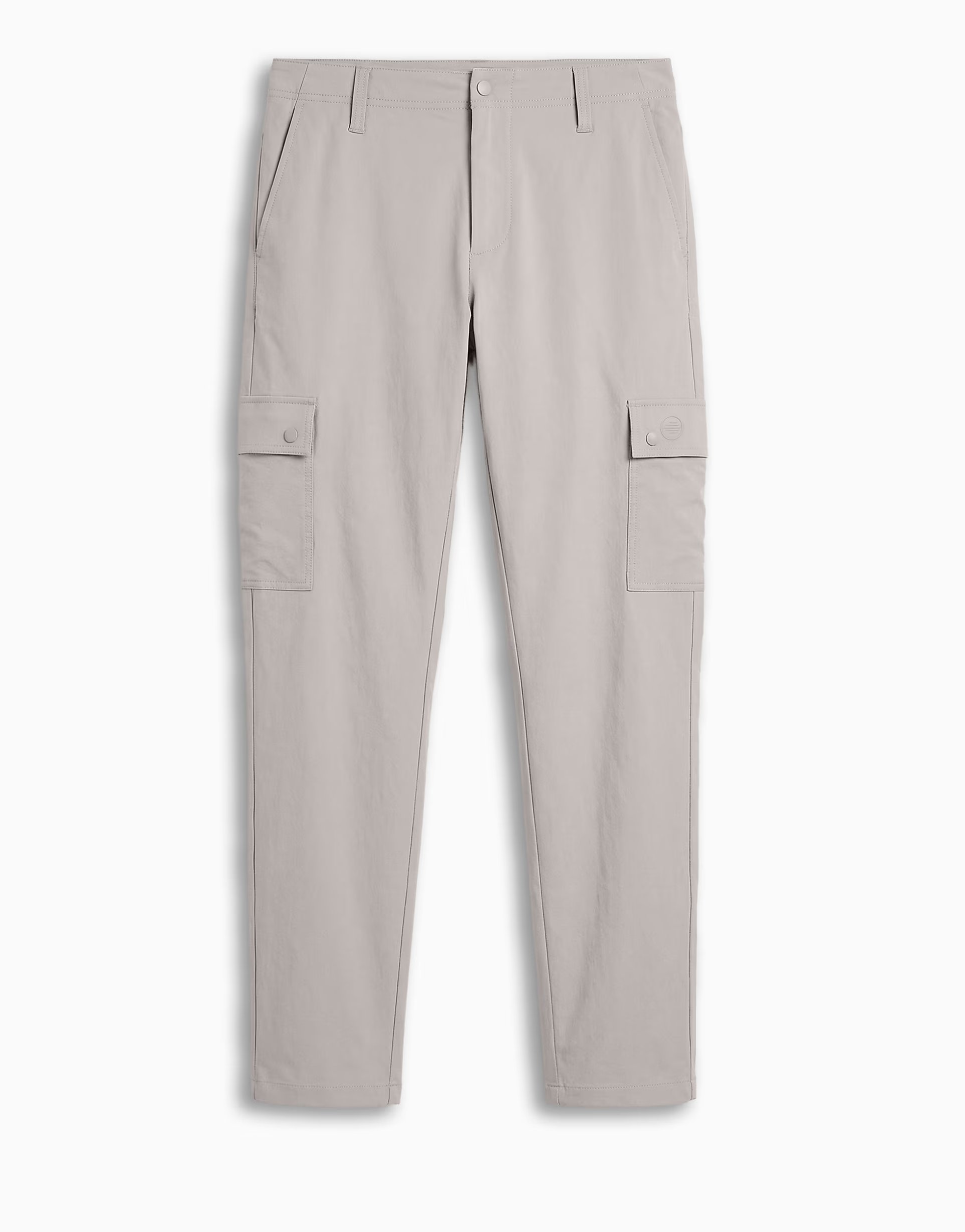 Designed with grey, four-way stretch, tapered fit, cargo pockets, button fly, and zipper closure, these trousers are perfect for casual outings.