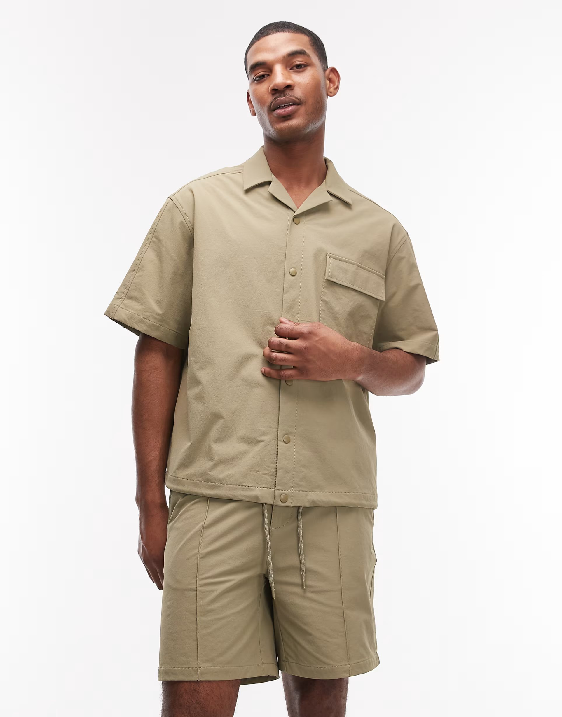 The ASOS Oversized Stretch Shirt in Khaki is made from four way stretch.