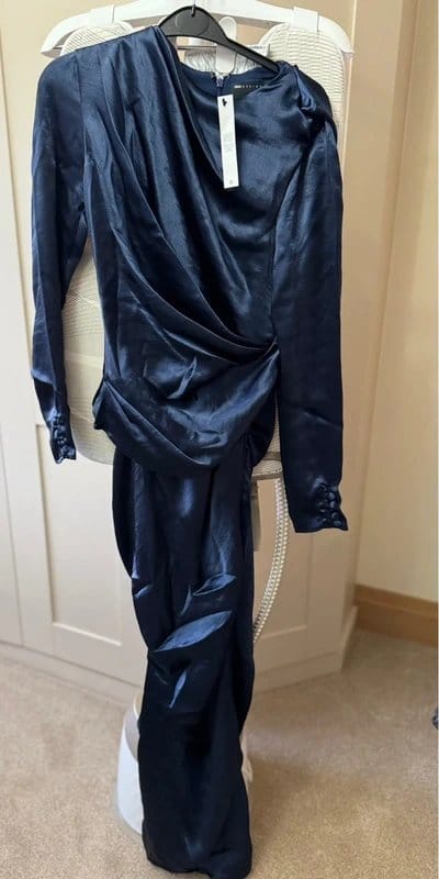 Back to ASOS Navy Blue Satin Drape Midi Dress | Size UK 8 →