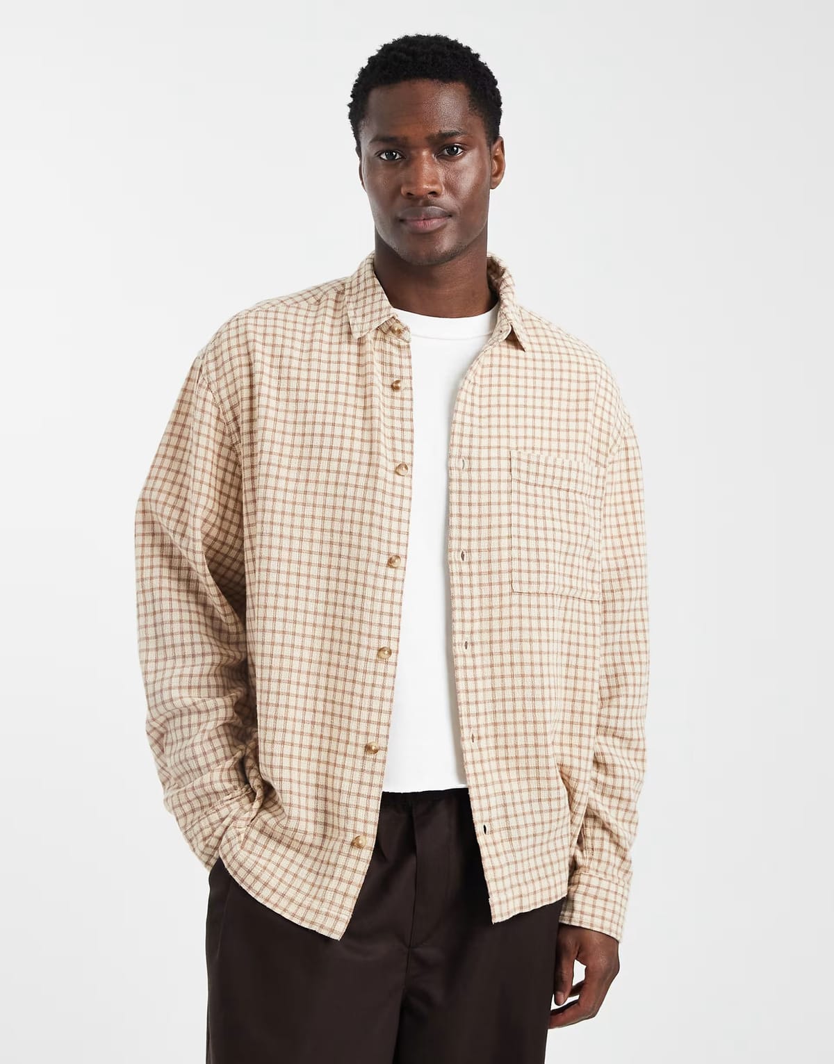 The ASOS Oversized Check Shirt in Brown is ideal for casual.