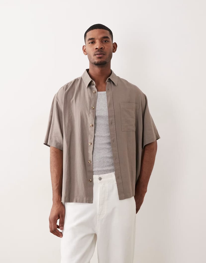 The ASOS Light Brown Linen Blend Oversized Shirt is made from linen, cotton.