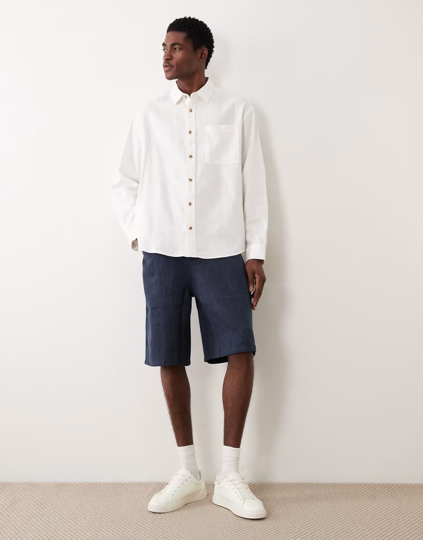 The ASOS White Linen Blend Oversized Shirt is available in sizes XXXL, XXL, XL, XS, L, M, S.
