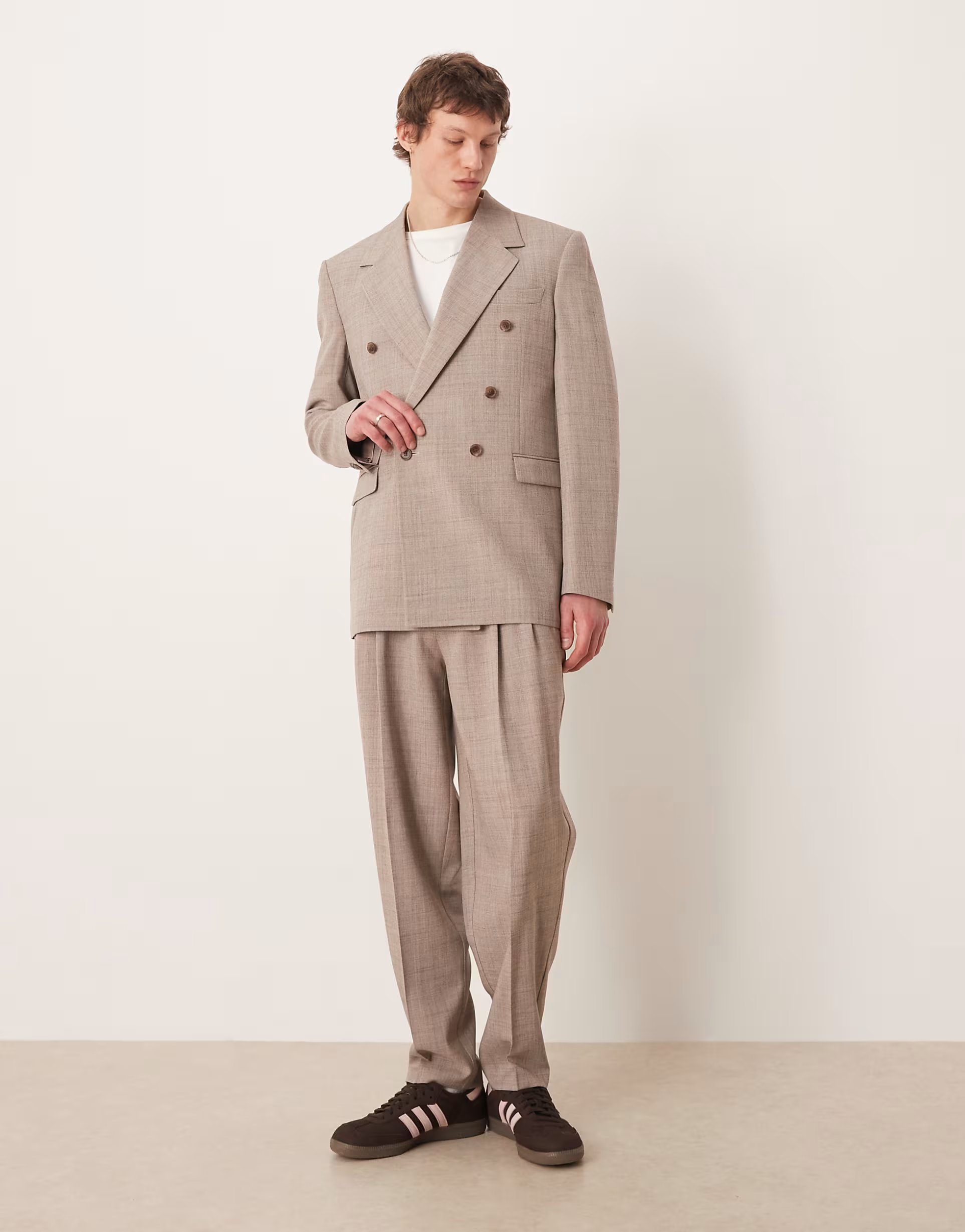 The ASOS Oversized Tapered Suit Trousers in Beige is ideal for business, business-casual.