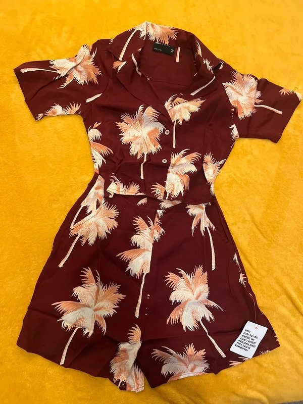 The ASOS Palm Tree 2 in 1 Shirt and Shorts Playsuit is ideal for beach, casual, party.