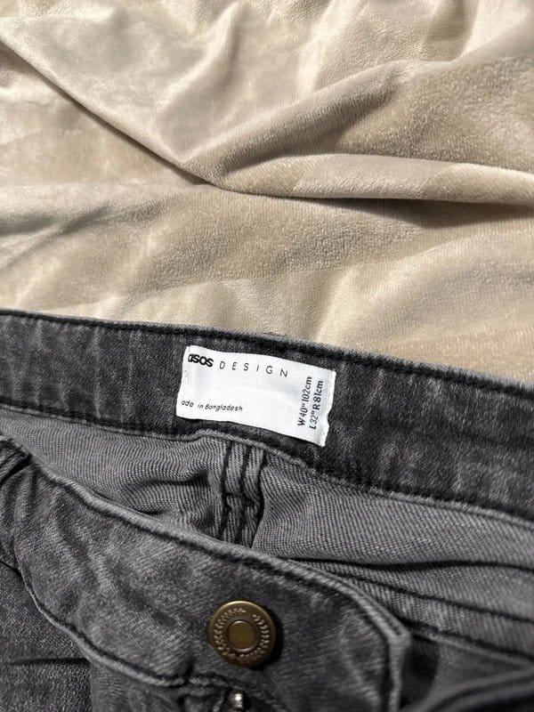 Stylish ASOS slim fit jeans in grey denim. Featuring a classic five-pocket design, zip fly closure, and buttoned waistband. Perfect for a casual yet polished look.