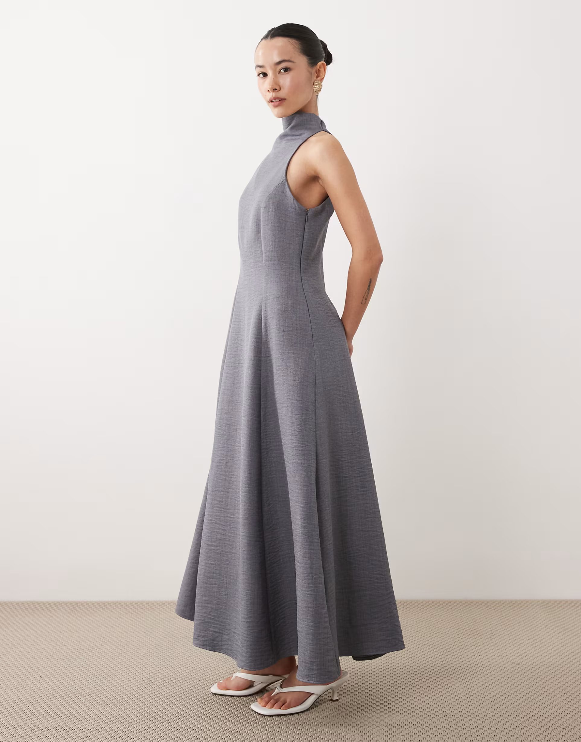 The ASOS Petite High Neck Sleeveless Maxi Dress in Denim Blue is ideal for casual, evening.