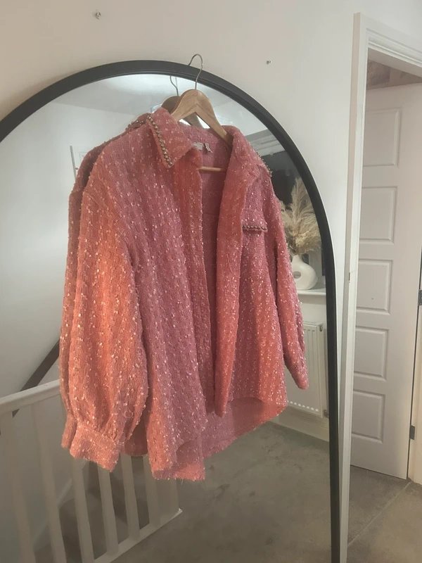 The ASOS Pink Embellished Jacket is available in sizes M.