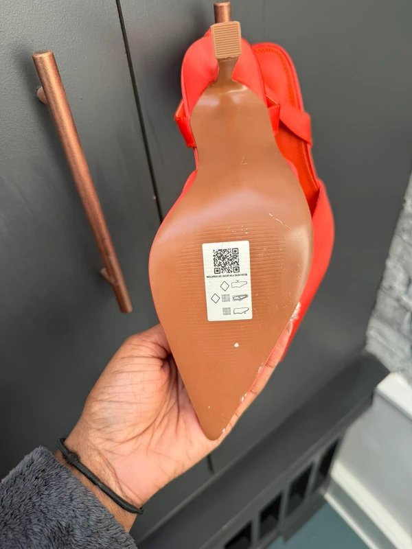 The ASOS Poppy Embellished Satin Slingback Heels in Coral is available in sizes XXXL, XXL, XL, XS, L, M, S.