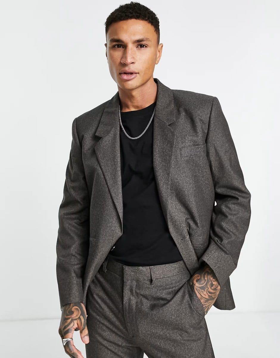 “Pair with a crisp white shirt and grey trousers for a polished look.”