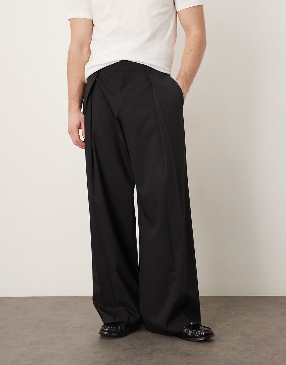 The ASOS DESIGN Smart Wide Leg Trouser with Front Pleat in Black is available in sizes XXXL, XXL, XL, XS, L, M, S.