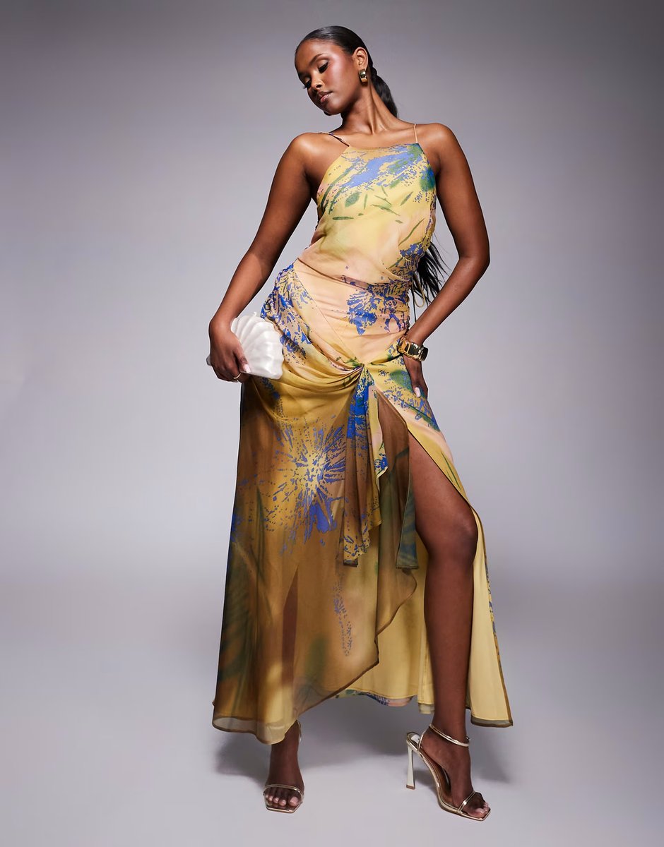 The ASOS DESIGN Racer Strappy Maxi Dress in Abstract Floral is ideal for party, evening, formal.