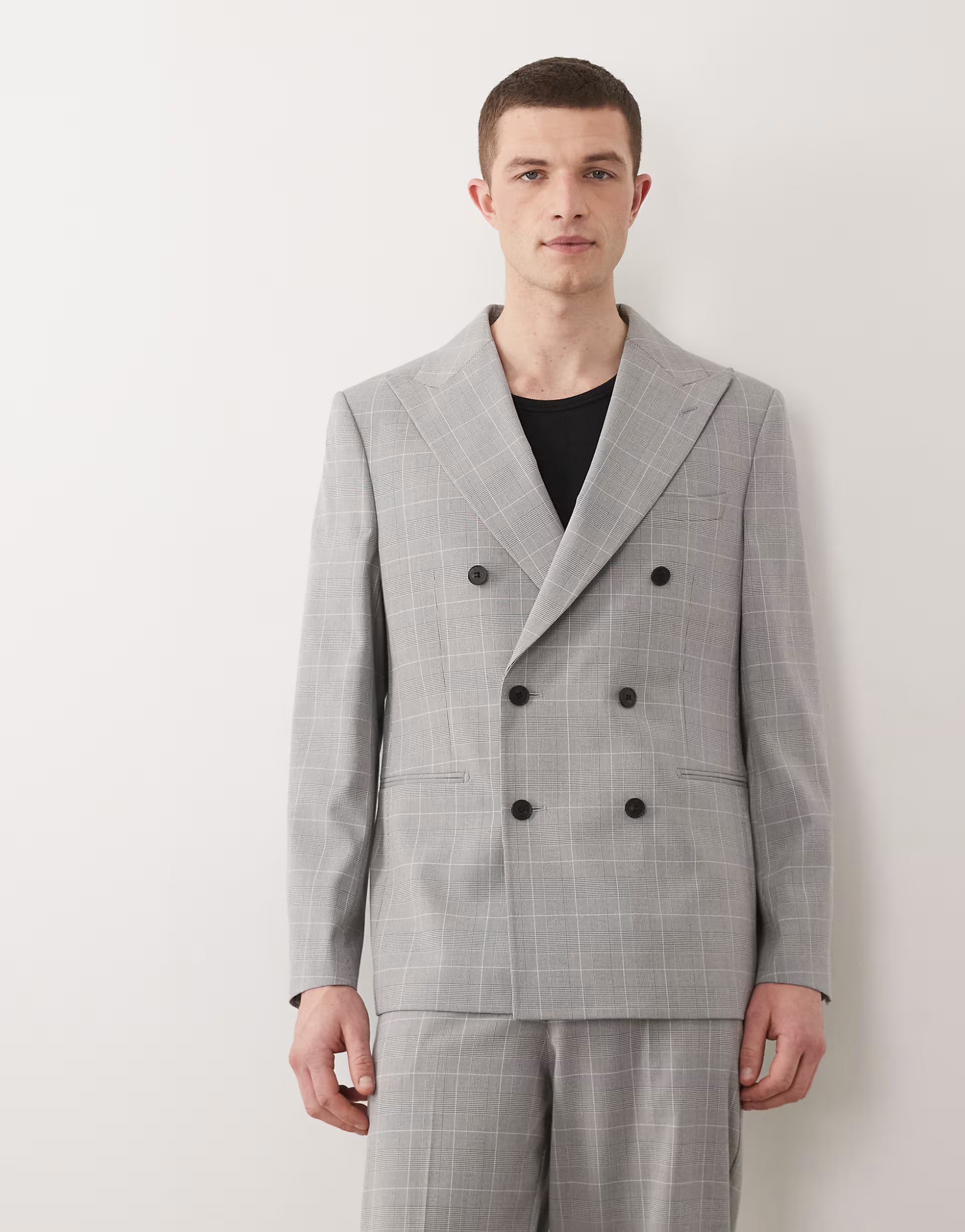 Elegant grey glen check double breasted suit jacket from ASOS DESIGN, perfect for a formal yet modern look. Crafted from a blend of quality materials and featuring a classic fit, this piece is ideal for business meetings and formal events.