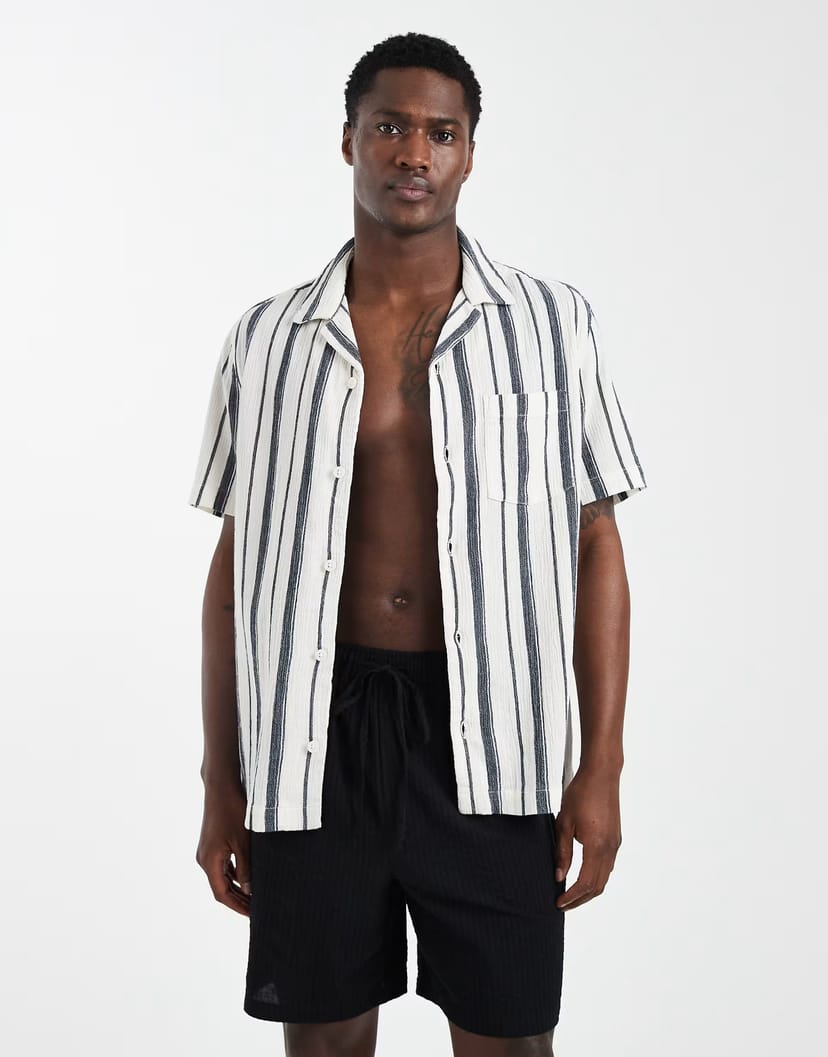 The ASOS Striped Textured Shirt in Cream and Blue is ideal for casual.