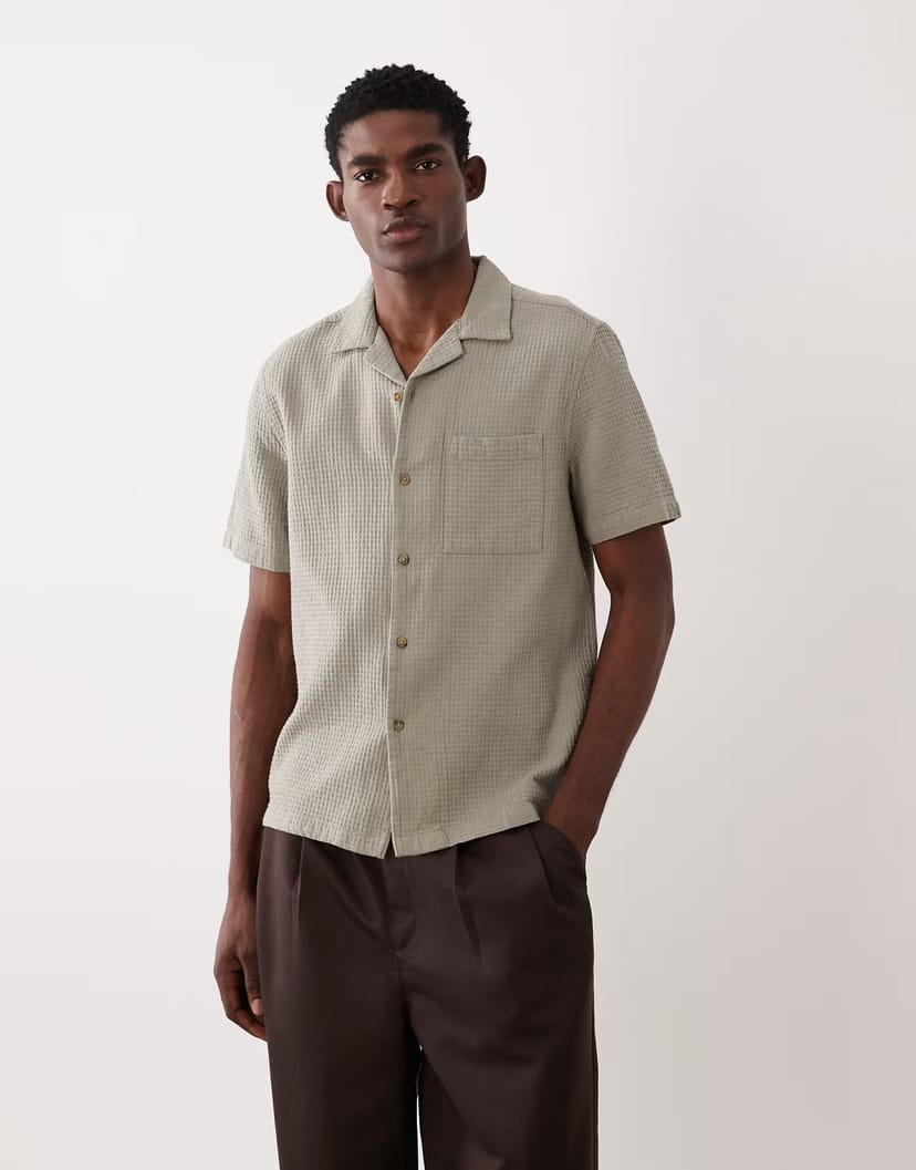 The ASOS Waffle Shirt in Green is made from waffle fabric.