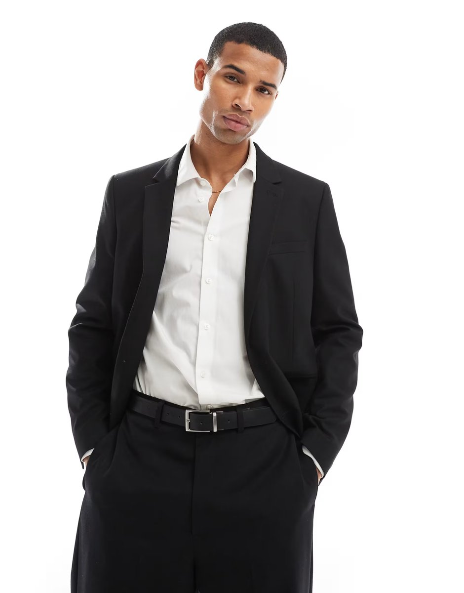 The ASOS DESIGN Regular Suit Jacket in Black is ideal for work, business, formal.