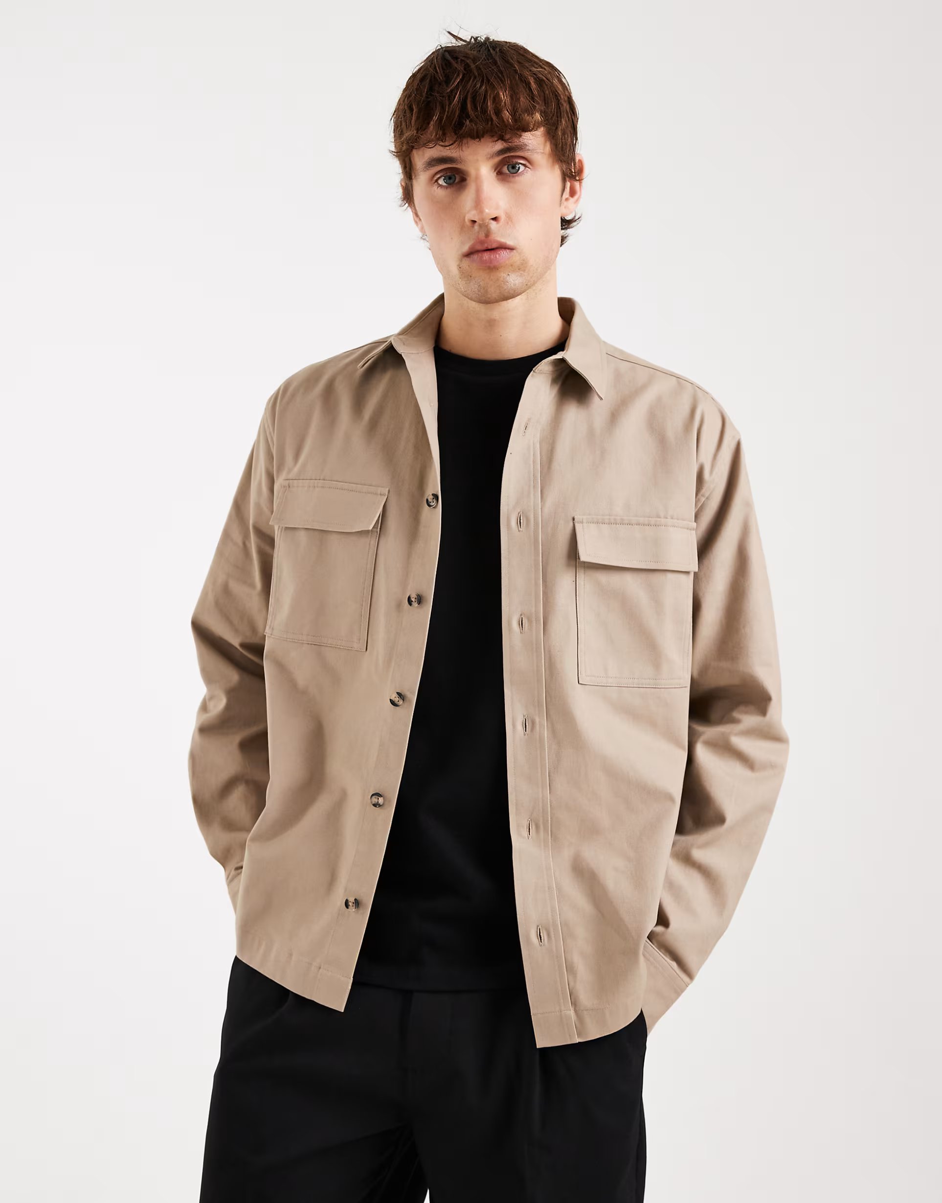 The ASOS Relaxed Shirt in Beige is ideal for casual, work.
