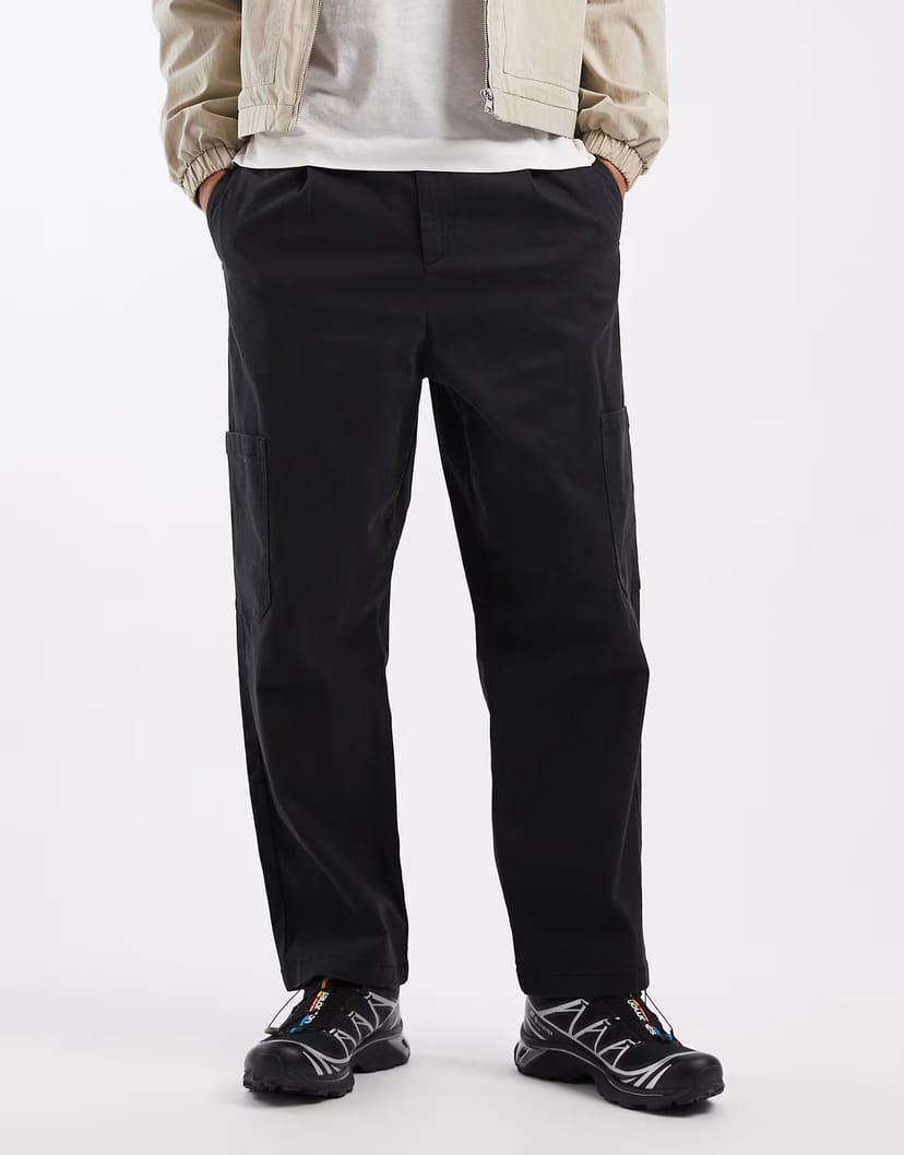 The ASOS Relaxed Tapered Cargo Trousers in Black is ideal for casual, smart-casual.