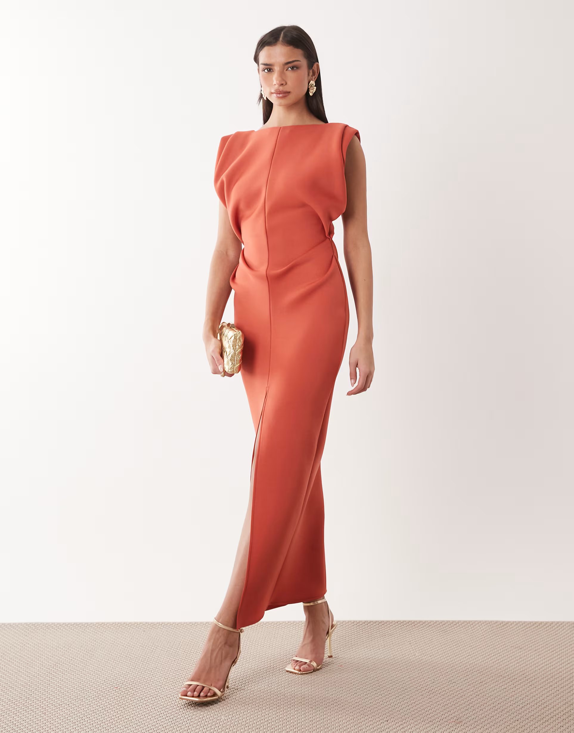The ASOS ruched waist red scuba-style maxi dress is ideal for evening, party.