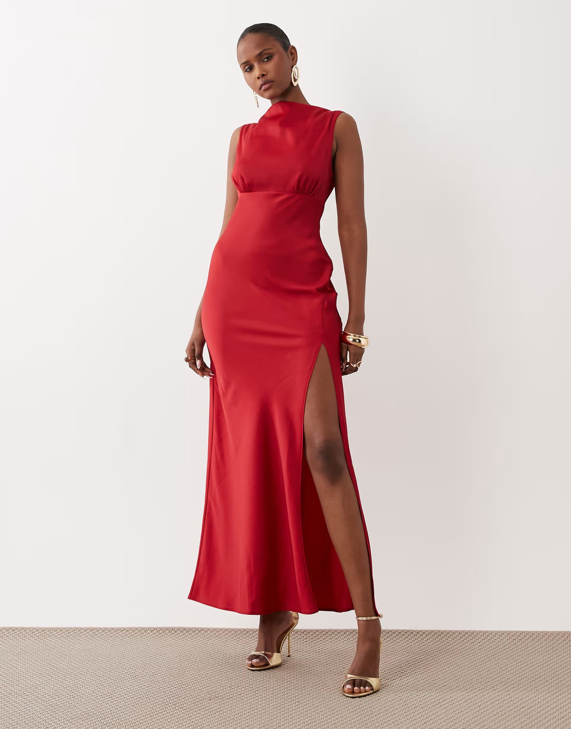 “Pair with gold high heels and a clutch bag for an evening event.”