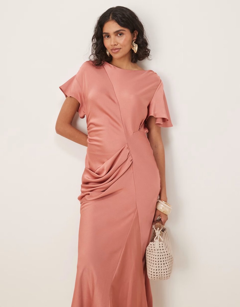 The ASOS DESIGN Dusky Rose Satin Flutter Sleeve Maxi Dress is ideal for formal, evening, party.
