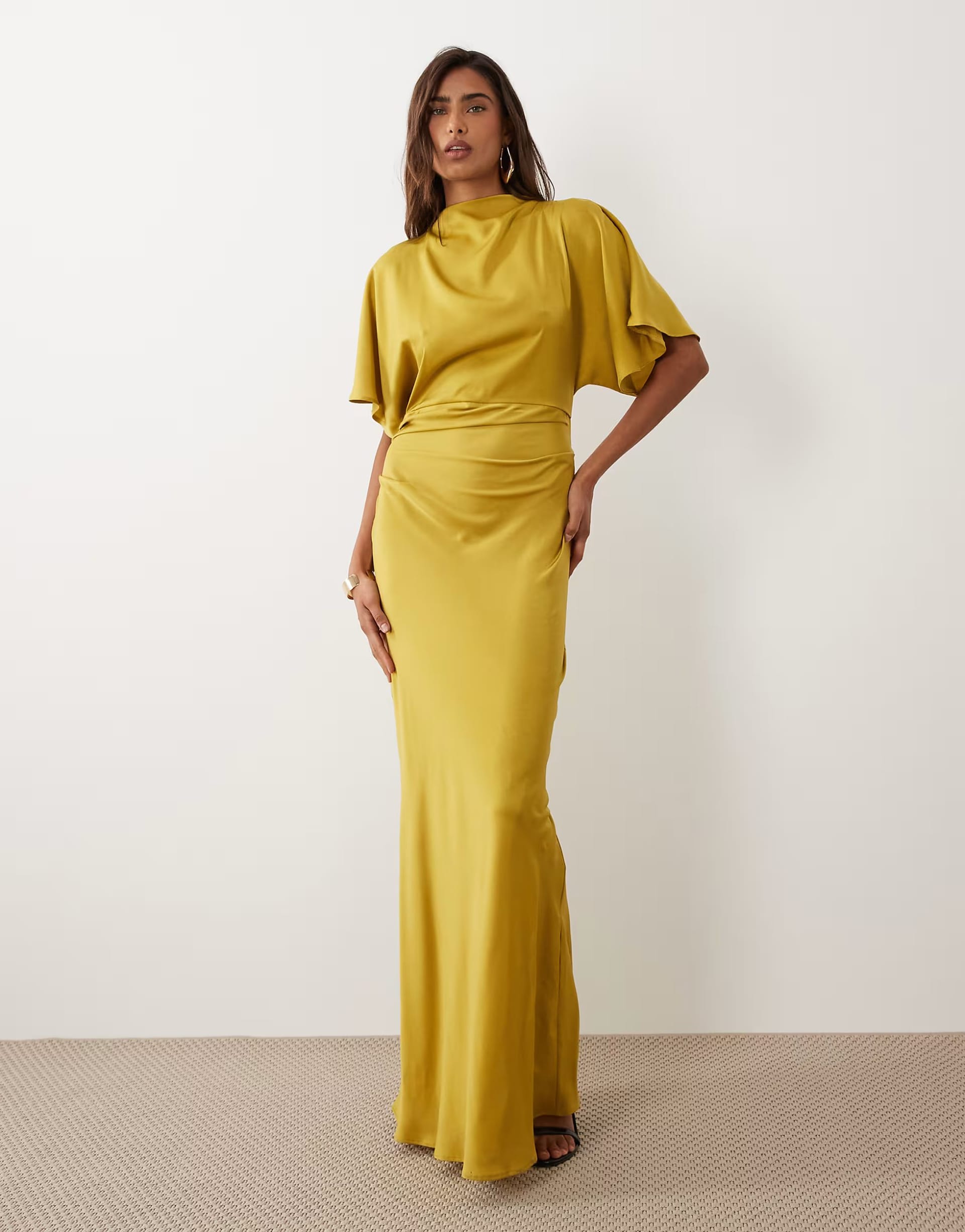 Back to ASOS Satin High Neck Blouson Maxi Dress in Chartreuse →