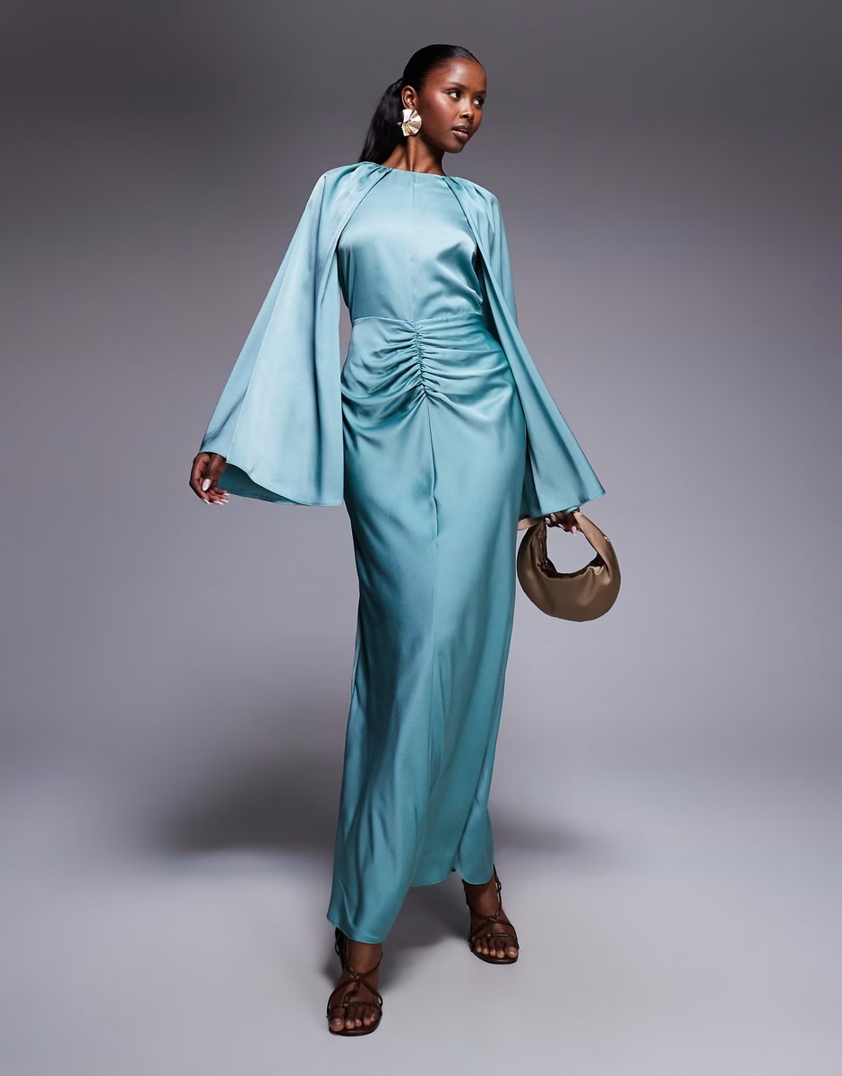 The ASOS Satin Long Sleeve Maxi Dress in Pale Blue is ideal for evening, formal.