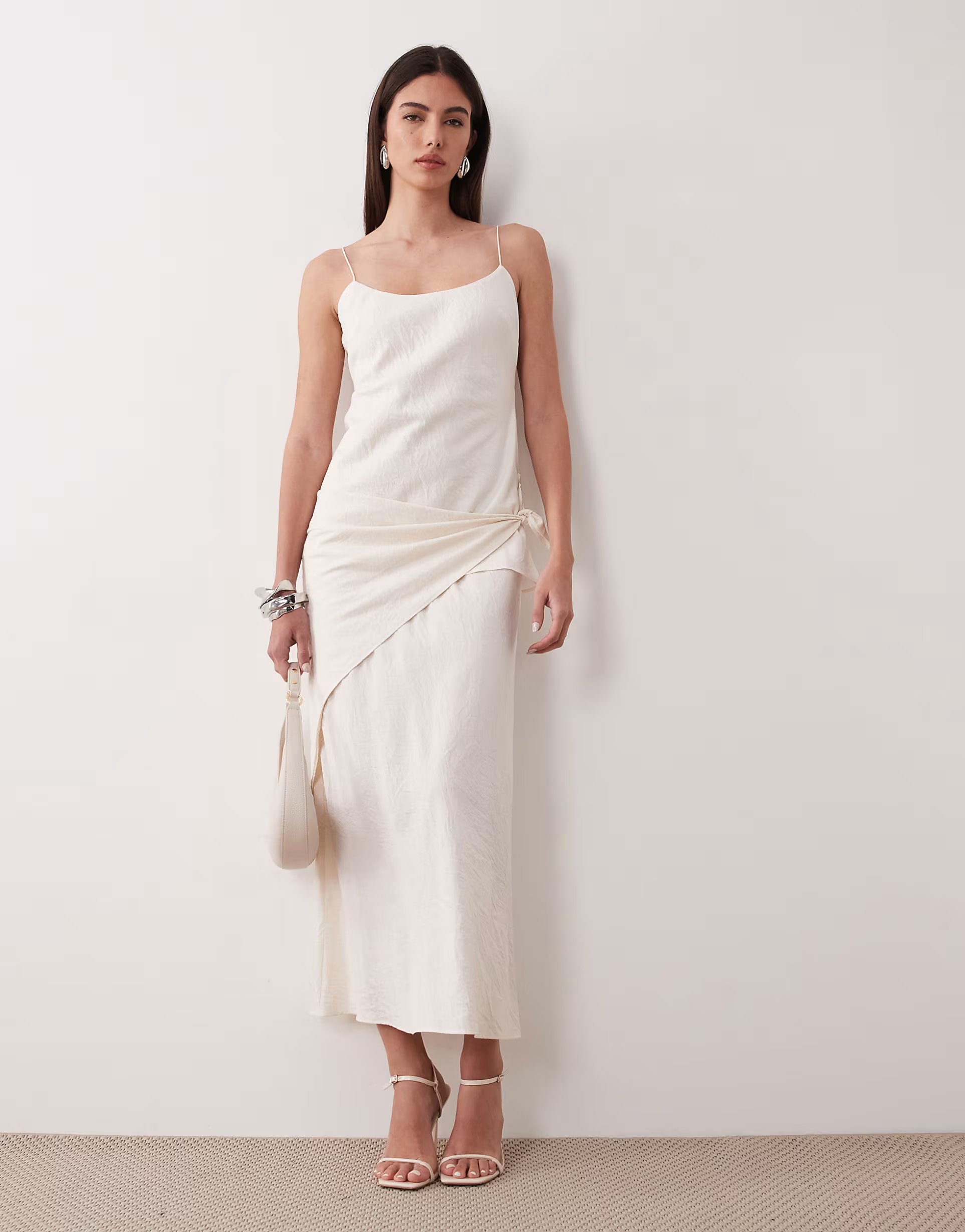 The ASOS Satin Cami Maxi Dress in Cream is ideal for evening, date-night.