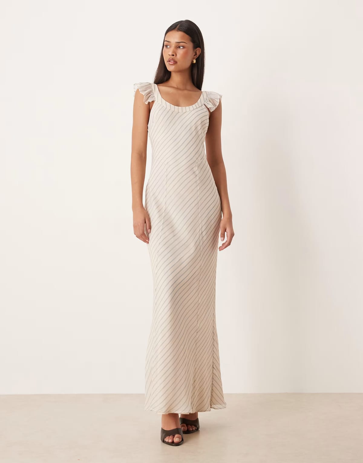 The ASOS Scoop Neck Maxi Dress with Tie Back in Cream and Blue Stripe is ideal for evening, casual.