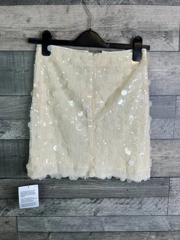 The ASOS Design Ivory Sequin Mini Skirt is available in sizes S.