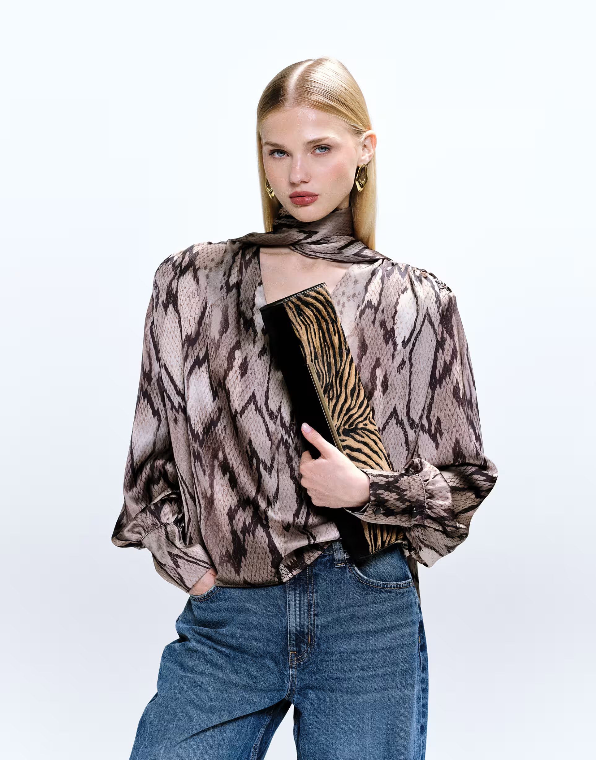 Designed with snake print, this satin blouse from ASOS exudes an elegant allure. Perfect for evening events or a chic night out.