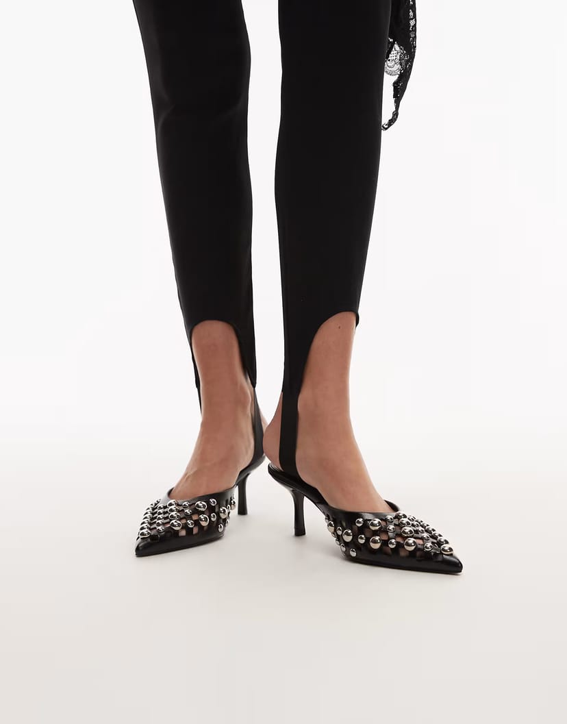 Featuring embellished cut out details, these black kitten heel mules from ASOS DESIGN Sia are a bold statement piece. Perfect for evening wear, they add an edge to any ensemble.
