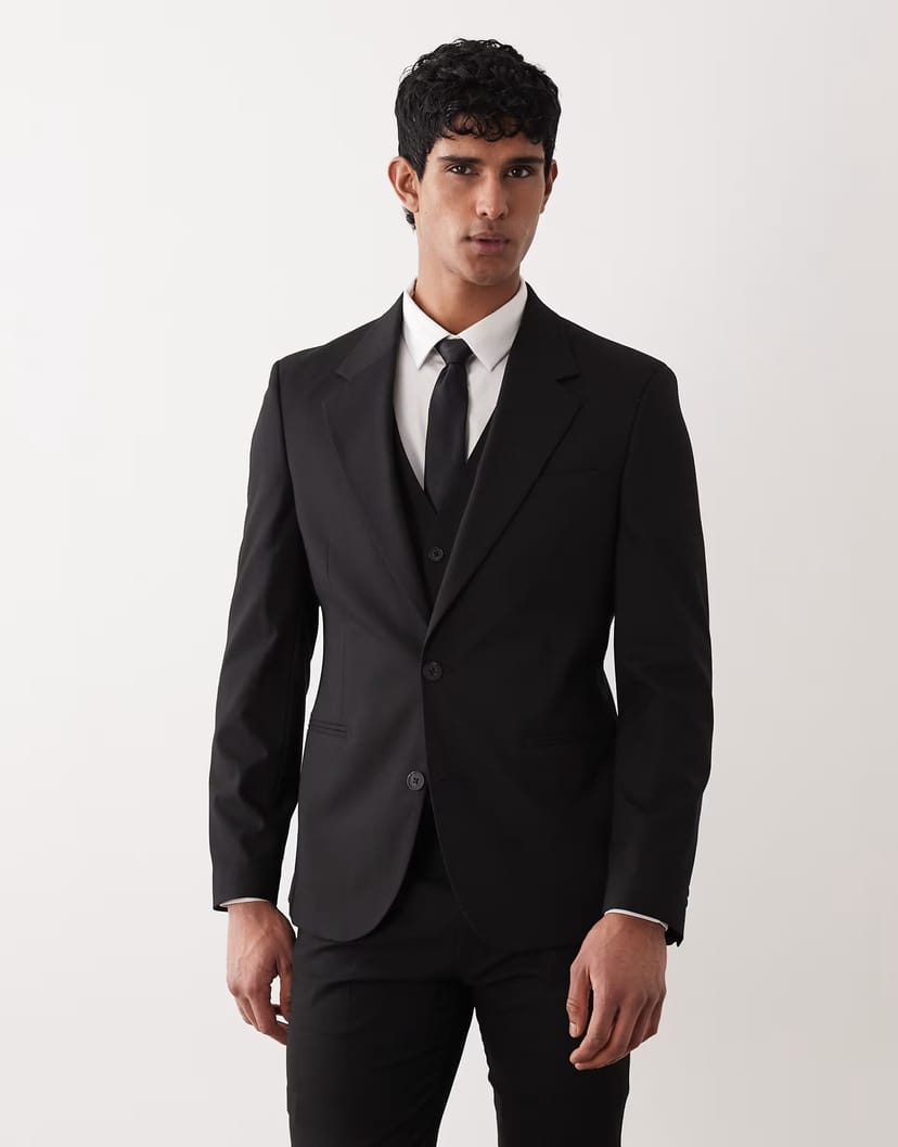 The ASOS Skinny Suit Blazer in Black is ideal for business, formal.