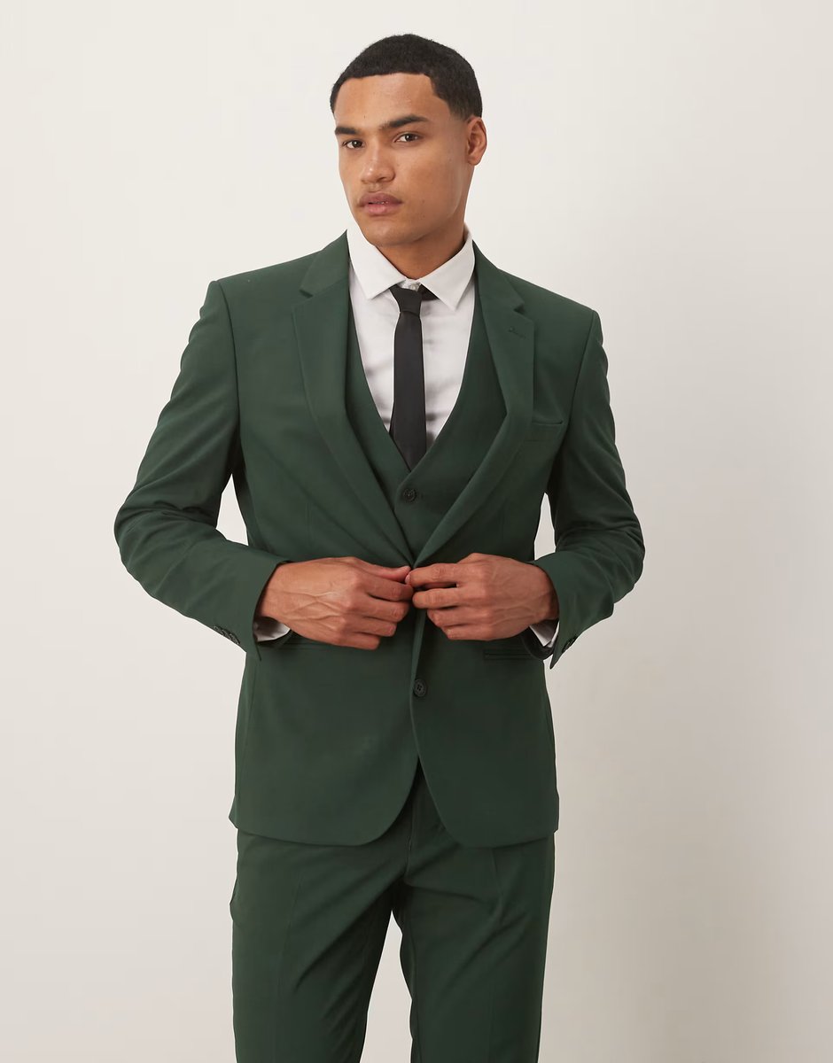 The ASOS Skinny Suit Jacket in Dark Green is ideal for work, business, formal.
