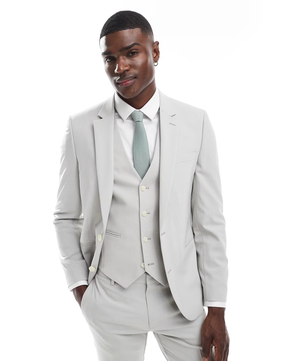 The ASOS Skinny Suit Jacket in Light Grey is ideal for business, formal, smart-casual.