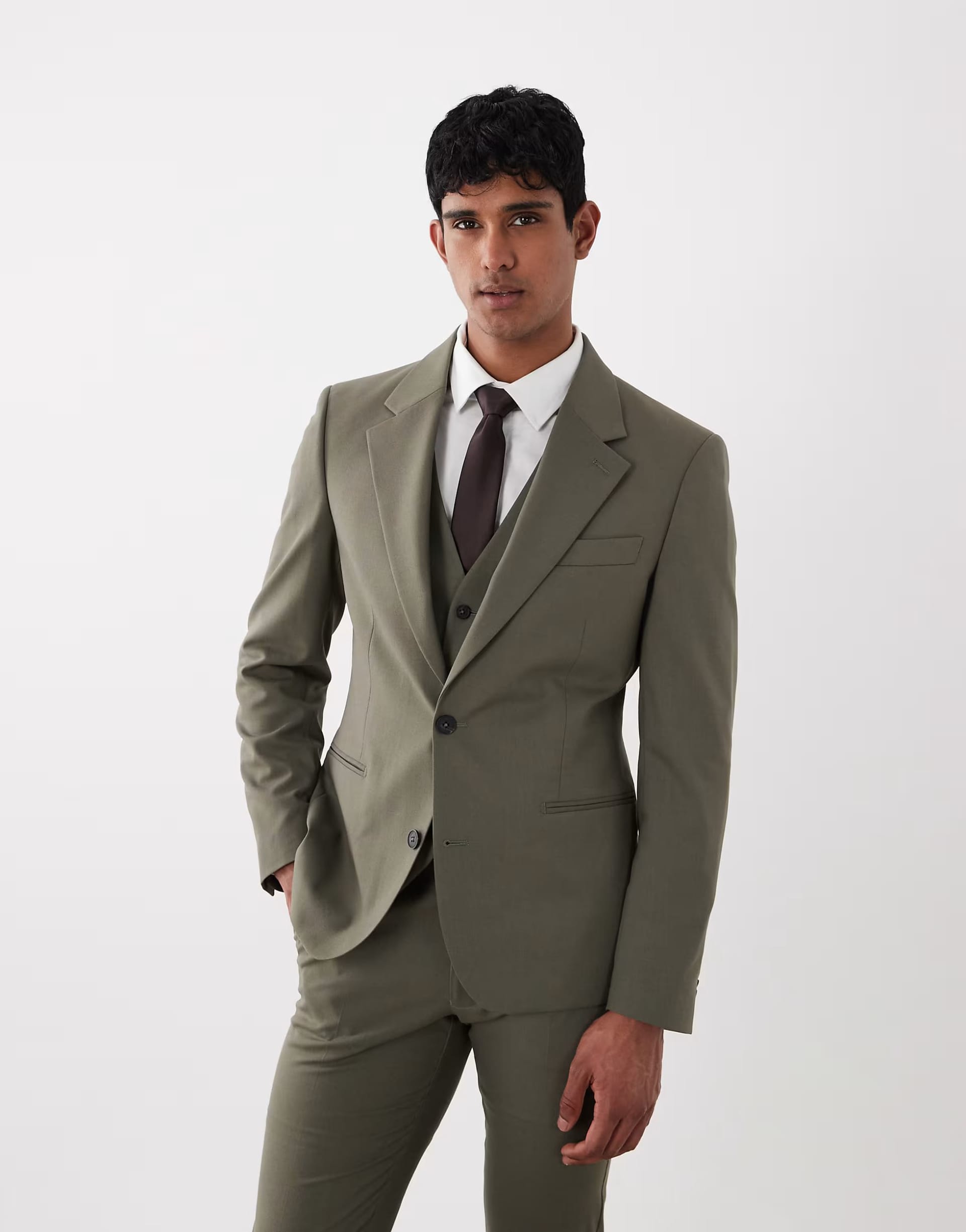 Pair with a dark green wool blend shirt and black leather dress shoes for a polished business look.
