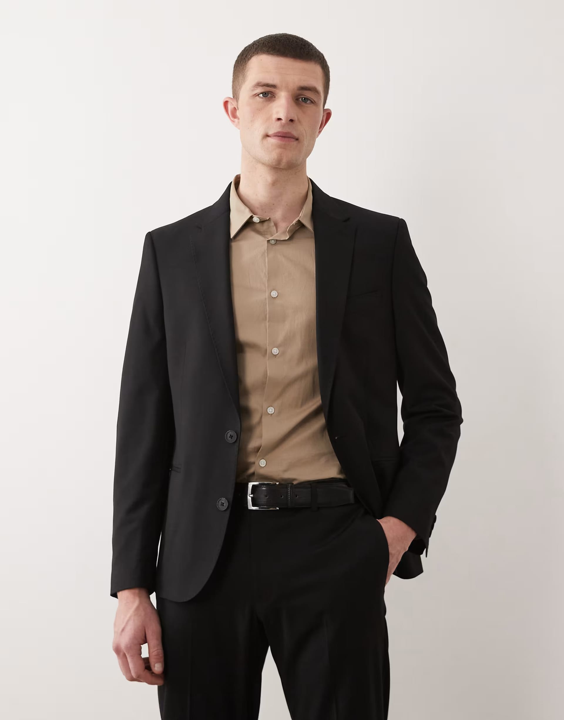 “Pair with a light grey dress shirt and dark wash trousers for a sharp business-casual look.”