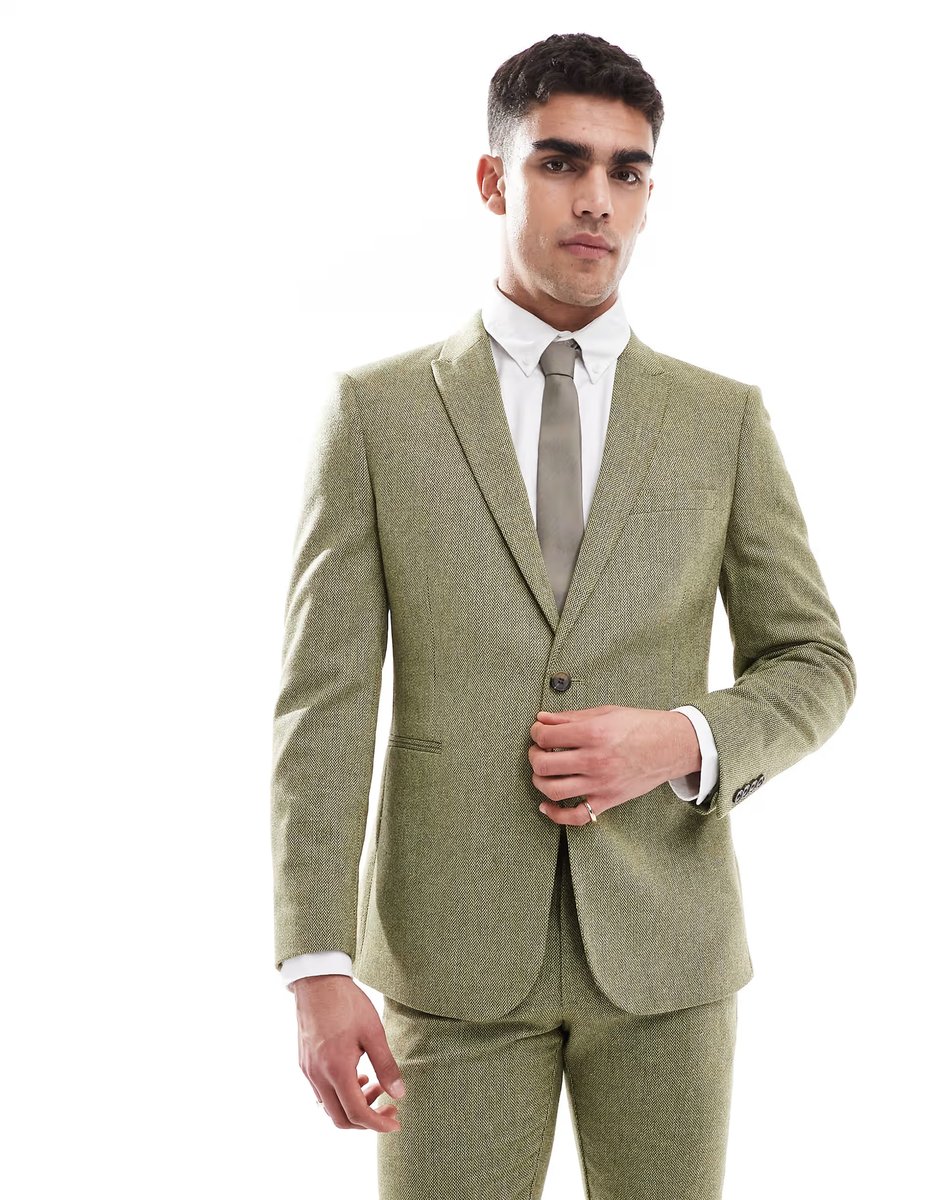 The ASOS Skinny Wool Mix Suit Jacket in Olive is ideal for business, casual, formal.