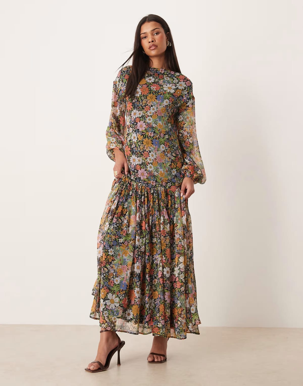 The ASOS Floral Slash Neck Chiffon Maxi Dress is made from chiffon.