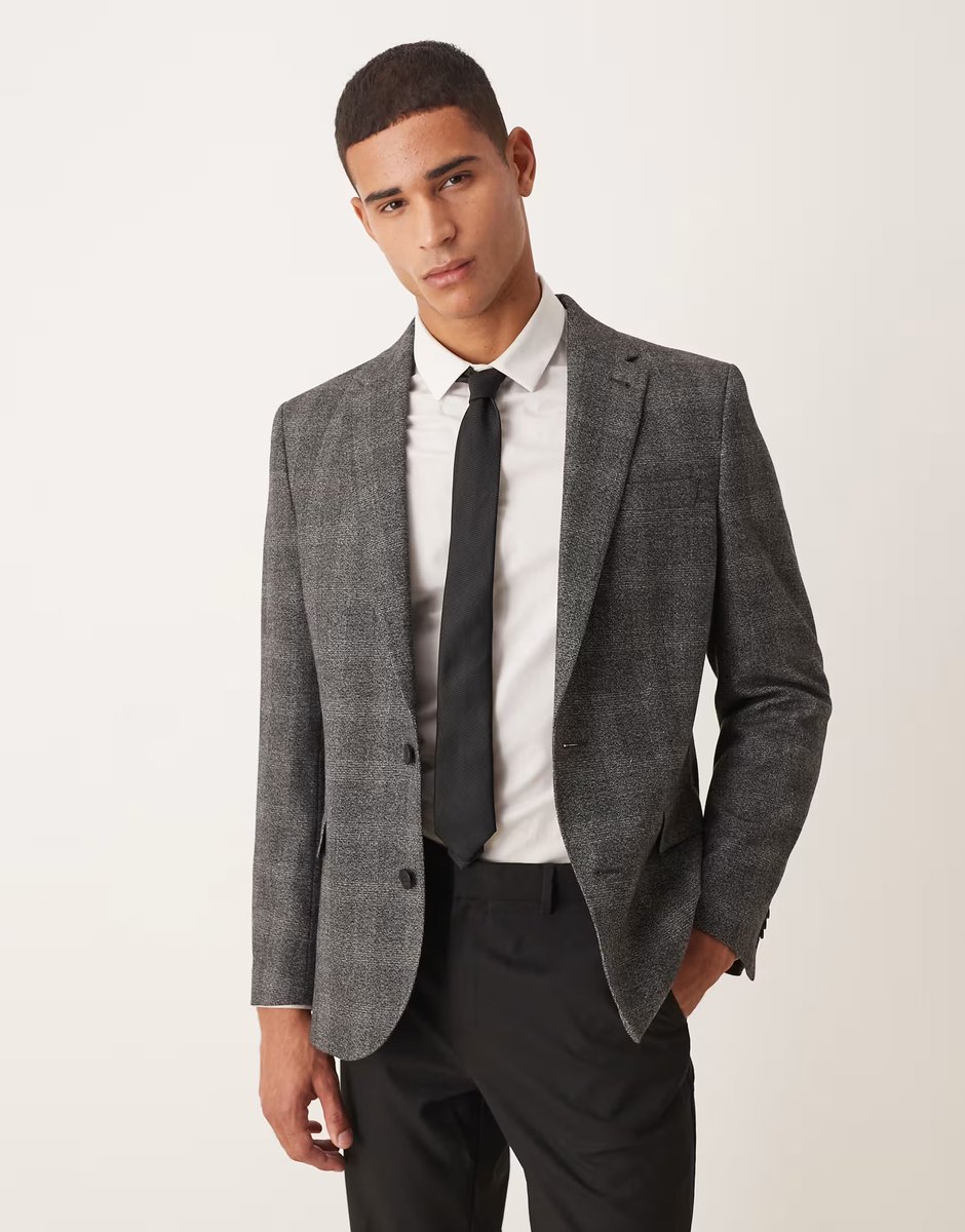 The ASOS Slim Check Blazer in Charcoal is ideal for work, business, smart-casual.